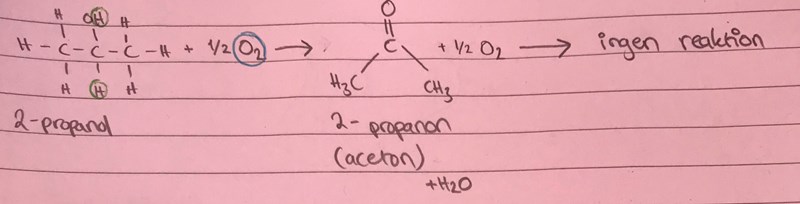 Hej, jag undrar över varför man inte kan oxidera vidare 2-propanon? Vad beror det på? Beror det på väten eller de två andra alkylföreningarna?