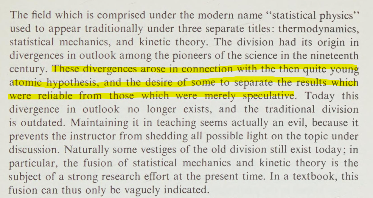 Agnostikformuleringen är för mig inspirerad av förordet till Wanniers "Statistical mechanics" (1966):