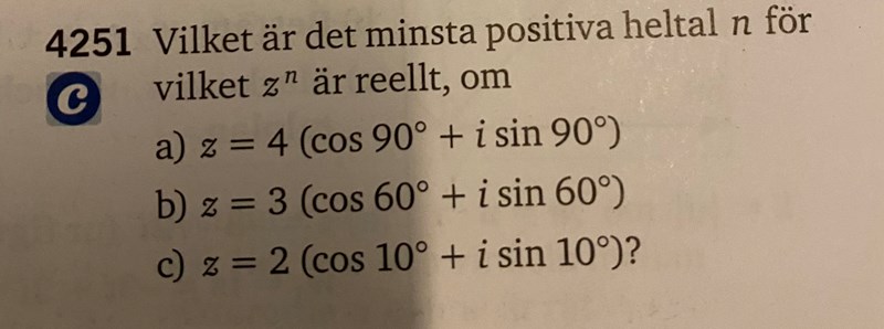 Hej! Om n = 0 så blir z=0 vilket är väll reellt. Varför kan inte svaren på samtliga uppgifter vara att n= 0? Tack på förhand!!
