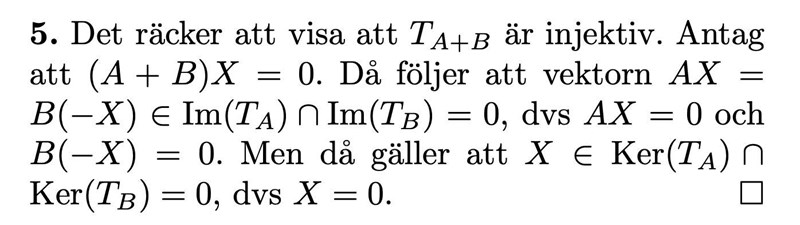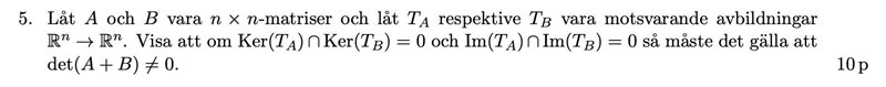 Andra bilden är facit. Varför kollar de när (A+B)X = 0 och inte när det(A+B) = 0?
