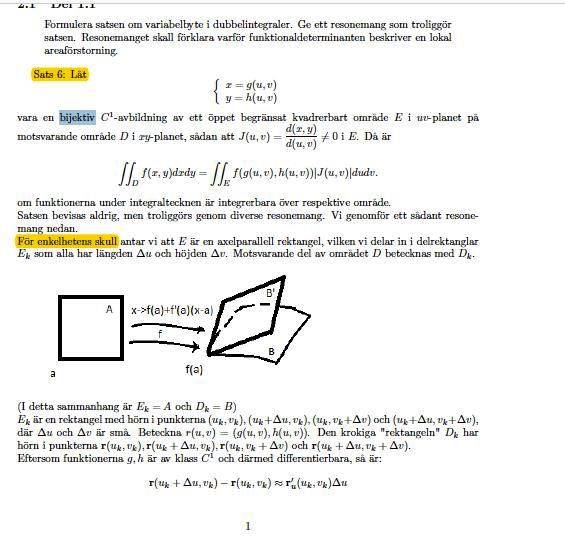Men det räcker att funktionen är bijektiv på området du integrerar över. Jämför med hur du i envariabelfallet kan använda variabelsubstitutionen u=x² så länge du inte integrerar runt x=0, eftersom funktionen är bijektiv så länge man väljer den positiva eller negativa grenen. Försöker du göra bytet runt 0 däremot får du problem, integral från x=-5 till 5 kan t.ex. inte uttryckas i u (det blir ju integral från 25 till 25, "via 0").