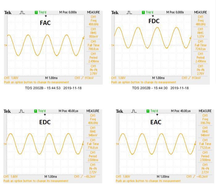 Bilden FDC visar en spänning >1.9V under ca 0.8ms av varje 2.5ms. Ögat uppfattar blinkandet som ett konstant sken.