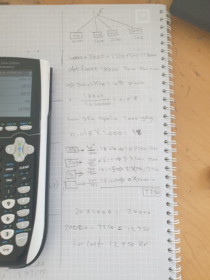 Om du vinner 5000 varannan gång och 0 varannan gång, så vinner du 2500 i genomsnitt per gång. Det är enda sättet att räkna.