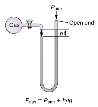Jag håller på att läsa på om gaser och har kommit in på det här med baro- och manometrar. Låt säga att man har en manometer som är sammankopplad med ett externt system i ena änden, och öppen i andra, som i bilden nedan:
