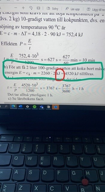 De har inte multiplicerat med 1000. Antagligen är angiven i enheten . Alltså blir svaret i kJ.