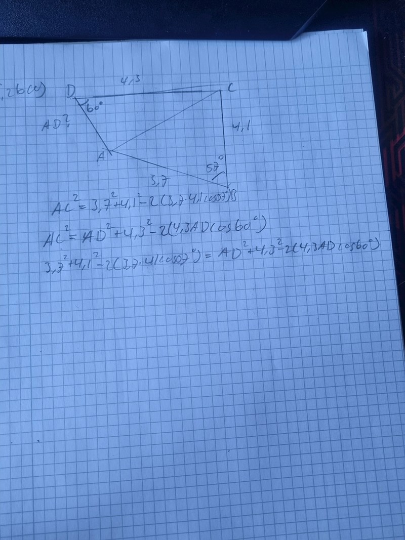 Hej! Är det någon som kan hitta varför jag får ett negativt svar på sträckan AD? Har kört svaret genom miniräknare och kan inte hitta något fel!