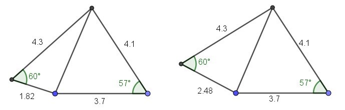 (Om du dock angett 57 radianer och 60 radianer, så får du verkligen två negativa lösningar)