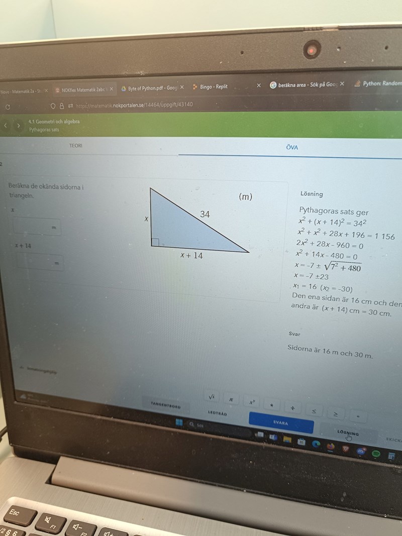 Varför får man fram just x^2 + x^2 + 28x + 196 = 1156? Den enda jag fattar är 196 för 14^2 men resten fattar jag inte