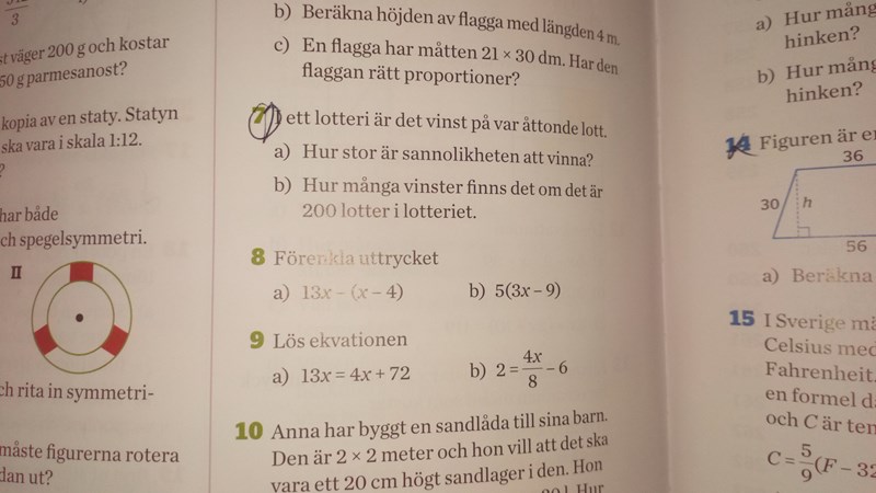 Smutstvätt skrev:a) Vi vet att var åttonde lott har en vinst. Det är samma sak som en åttondel, vilket ger att sannolikheten är P = 0,125.