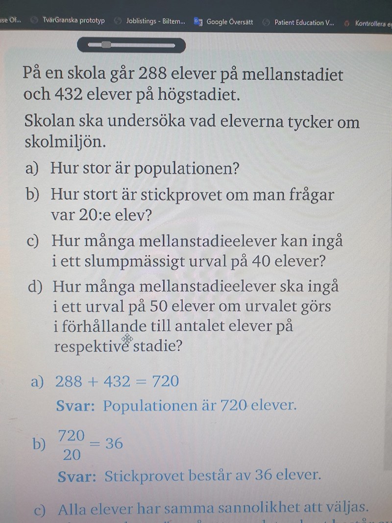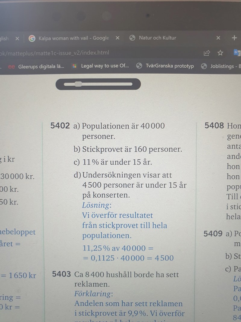 Men i den ändra när dem fråga hur stor är stick prove svar är 160 enligt facit men enligt example det är fel