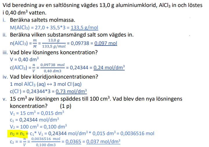 Samma koncept gäller i din uppgift, vattnet som tillsäts innehåller ju varken Al eller Cl3, då ändras inte substansmängden (antalet) av dessa ämnen.