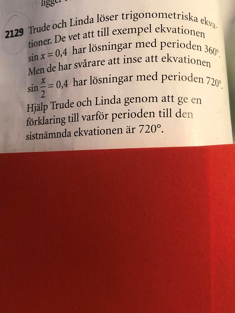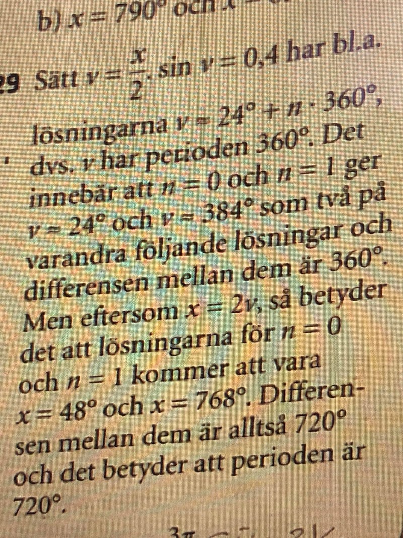 Man kan tex definiera en ny variabel y = x/2. Lösningarna för sin y = 0,4 har då perioden 360. för att hitta lösningar för x i sin (x/2) så behöver man alltså multiplicera svaret man fick för y med 2. Det gäller även perioden.