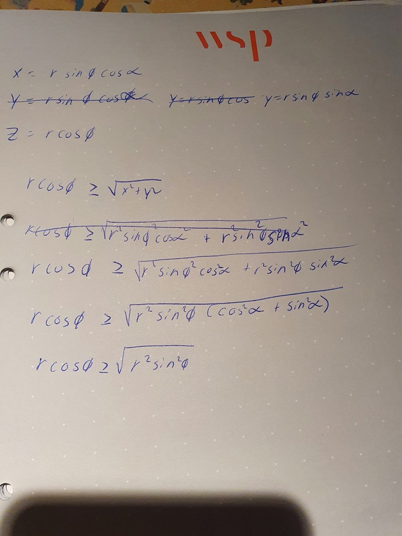 I sfäriska koordinater så är = och z = .