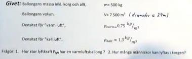 naytte skrev:De räknar med hela ballongens totala tyngd, det vill säga ballongen plus den varma luften inuti ballongen. Luften i ballongen väger ju också något, eller hur? :)