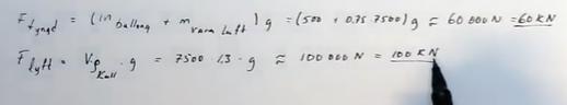 eller nu när jag tänker efter är ju den egentliga lyftkraften 100 KN men pga tyngden (mg) så påverkas den, men vad symboliserar 40 KN? (resulterande kraft?)