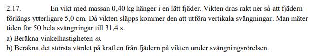 Här ber de om kraften från fjädern på vikten. I facit har de svarat på följande vis: