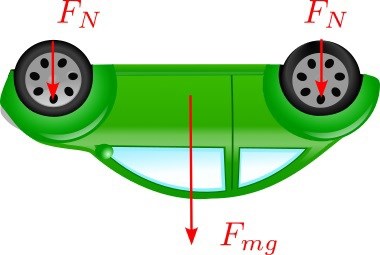 Det finns alltså ingen kraft som "balanserar" normalkraftens inverkan på bilen. Om du däremot frilägger vägbanan kommer det dyka upp en normalkraft från bilen som trycker på vägbanan, riktad uppåt.