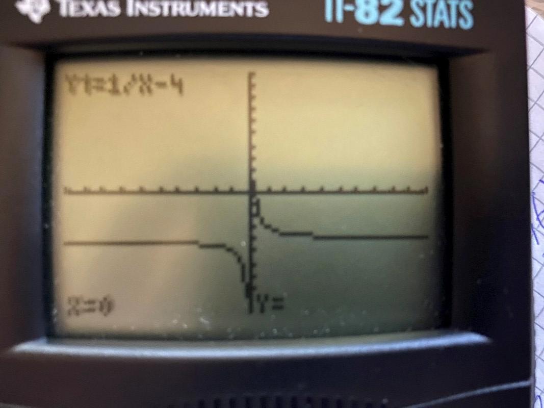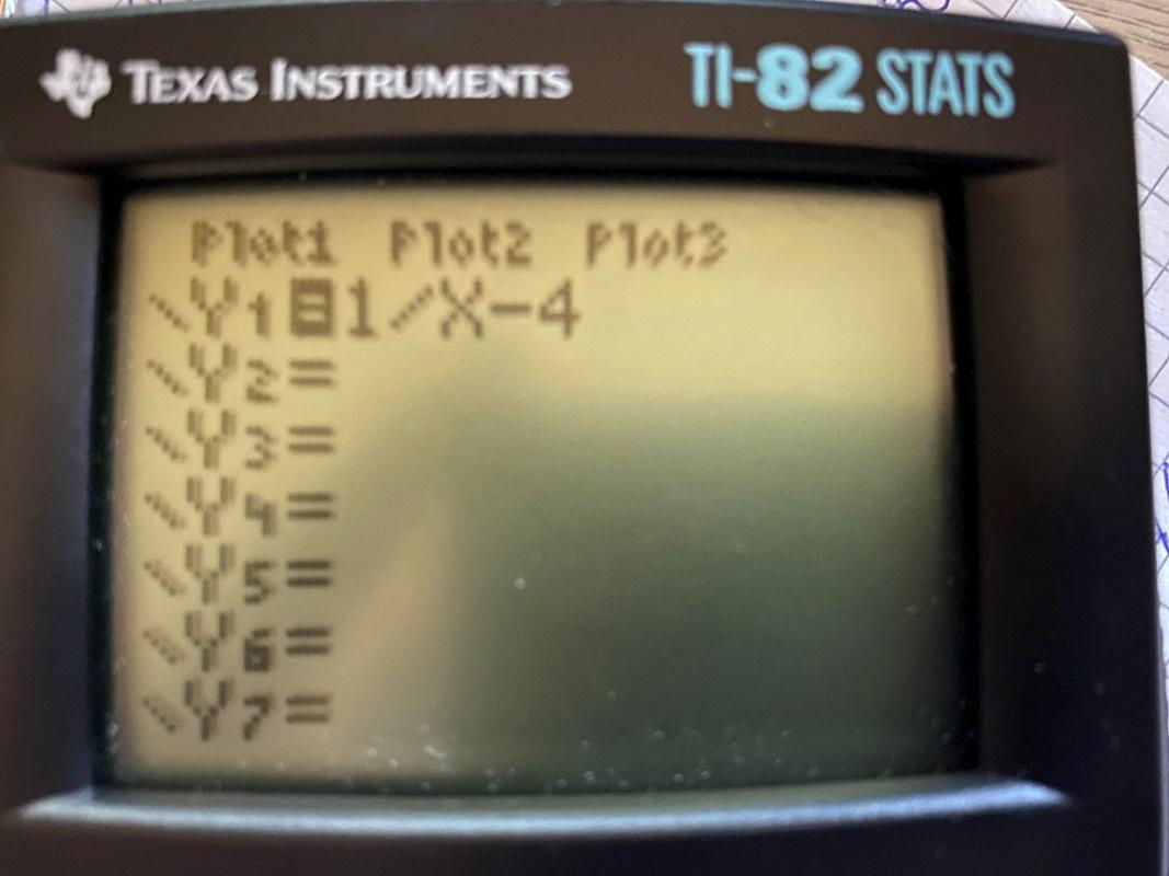 försöker förstå mig på varför min ti-82 visar en annan graf vid utrycket f(x)=1/x-4.