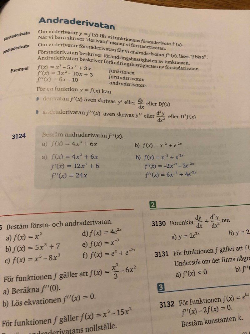 Att derivera en gång till är att hitta lutningen på derivatan. Om du exempelvis har funktionen får du: