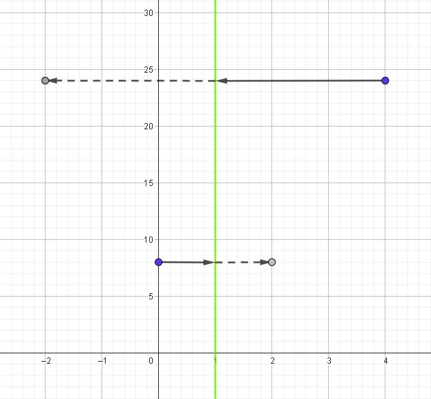 Tvärtom: -2 speglas i 4 och 0 speglas i 2.