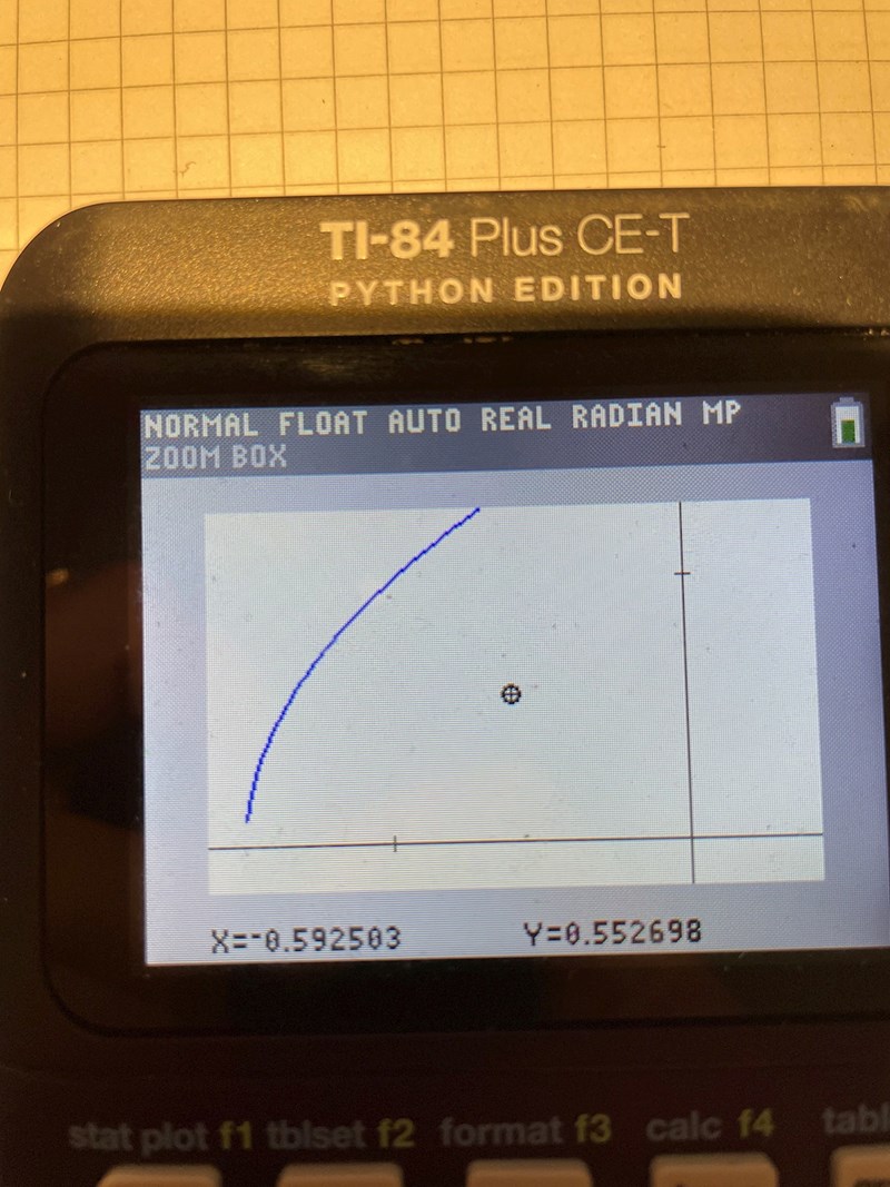 Hej, jag har ritat upp funktionen på min ti-84 räknare. Dock så ligger grafens ändpunkt ovanför x-axeln vilket är lite konstigt eftersom funktionen borde skära x-axeln (för x = -1,5). Någon som vet varför grafen "stannar upp"?