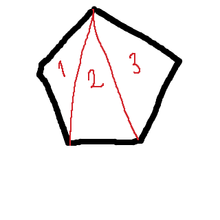 Om vi har en triangel, dvs. n = 1, har vi tre hörn. Om antalet hörn i en n-hörning ska stämma, måste vi alltså dra bort två hörn. Detta märks tydligast om du delar in några polygoner i trianglar: