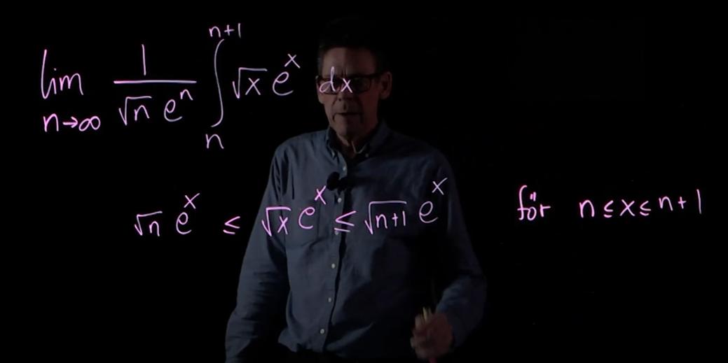 Varför substituerar han in n+1 respektive n för roten ur x men inte för e^x?