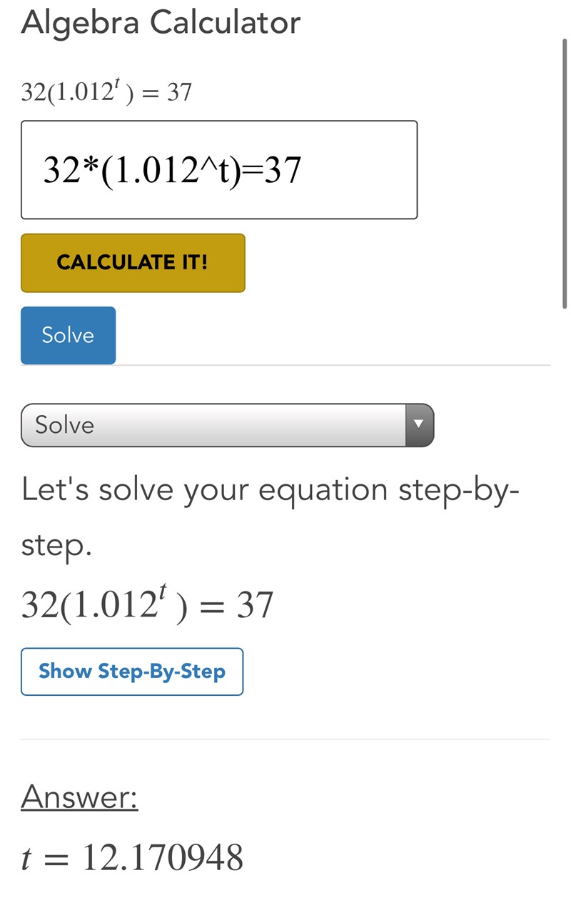Sedan ska det vara ett minustecken framför tiden i exponenten vilket du de senaste gångerna när du fått t = 12 missat.