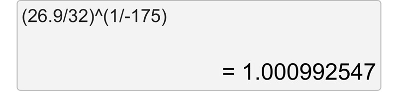 ln a = -1/175*ln(26,9/32)