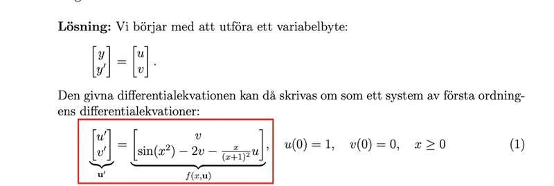Derivatan av v blir då andraderivatan av u.