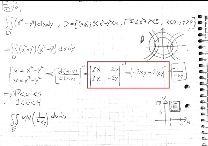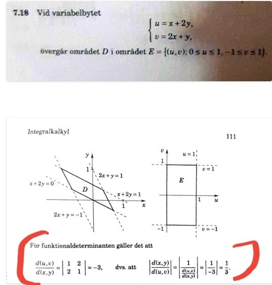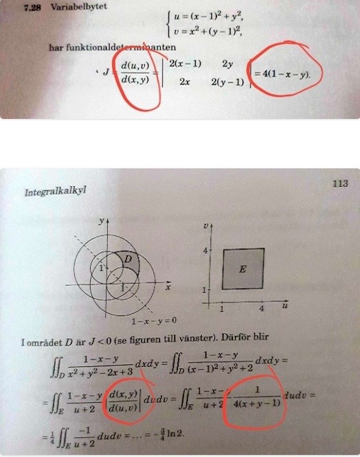 Och jag ser inte felet i funktionaldeterminanten, det är ju och i och med att jag räknar istället, så tar jag inversen av resultatet så det blir rätt. Eller vad menar du?