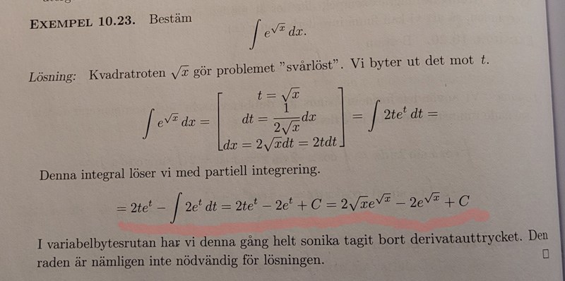 * Beror det på att i integraltecknet så har vi 2t*et, och dessa två faktorer har variabler i sig (så man blir tvungen att utnyttja Partiell integration)?