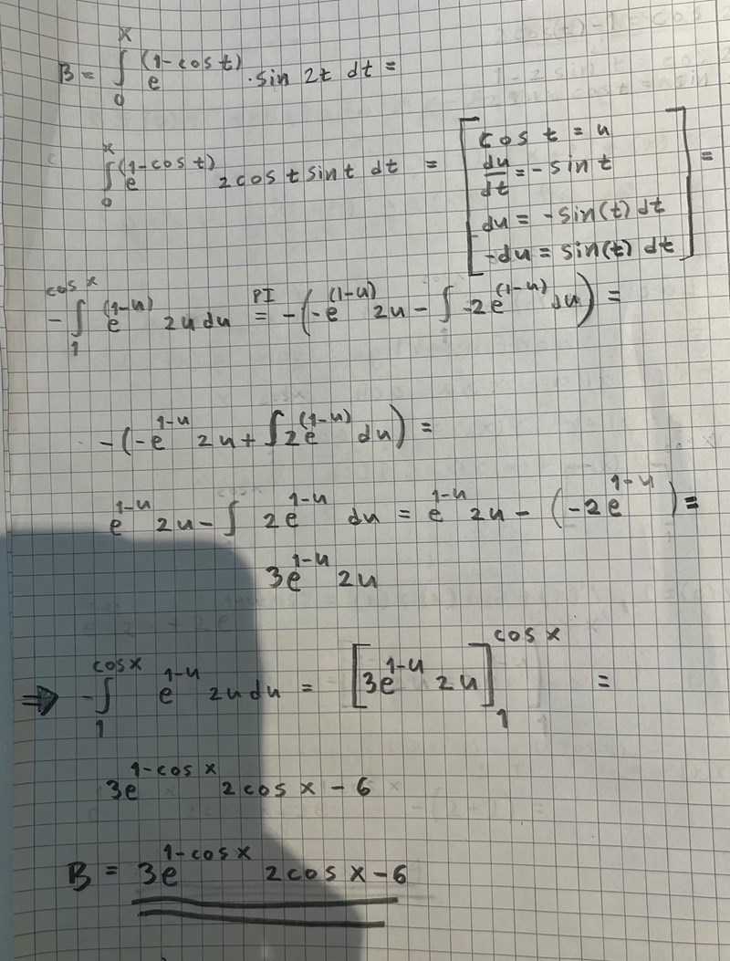 I min uträkning försöker jag lösa en integral, och jag undrar om det är i den felet ligger, jag skulle därför vilja fråga om min integralberäkning ser ok ut? Stort tack på förhand!