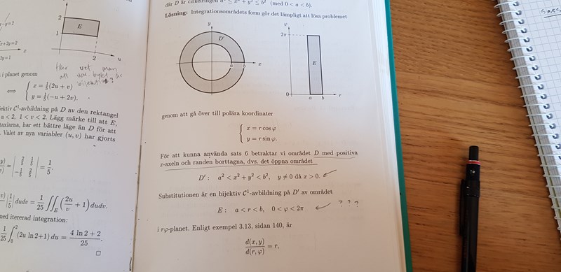 medans de samtidigt beskriver området E som a < r < b, 0 < < 2pi.