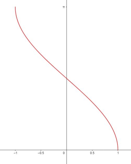 Funktionen har alltså nödvändigtvis en begränsad värdemängd vilket innebär att ursprungliga funktionen innan invertering måste ha begränsad definitionsmängd. Vi kan inte gå över hela utan måste begränsa oss till .