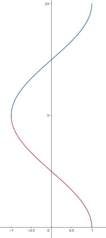 Här ser vi att den blå kurvan har annat värde än den röda för ett givet värde på . Det går därmed inte att definiera en funktion som låter löpa hela vägen enligt .