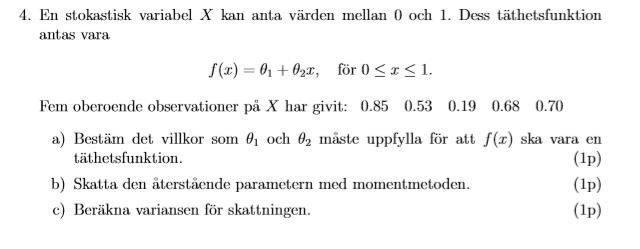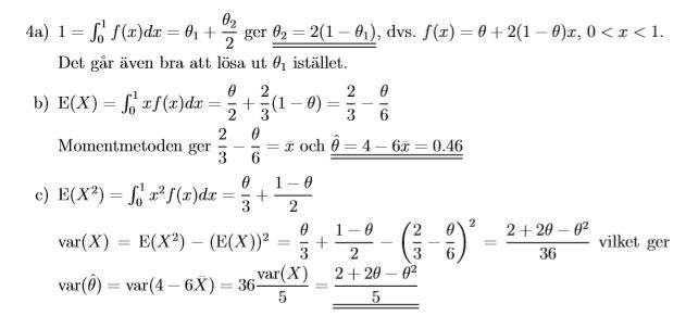 Momentmetoden sätter likhet mellan populationsmedelvärdet och stickprovsmedelvärdet , vilket resulterar i estimatorn
