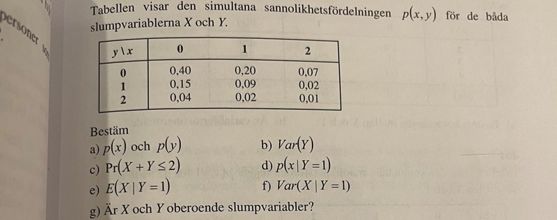ur den simultana sannolikhetsfunktionen för X och Y .