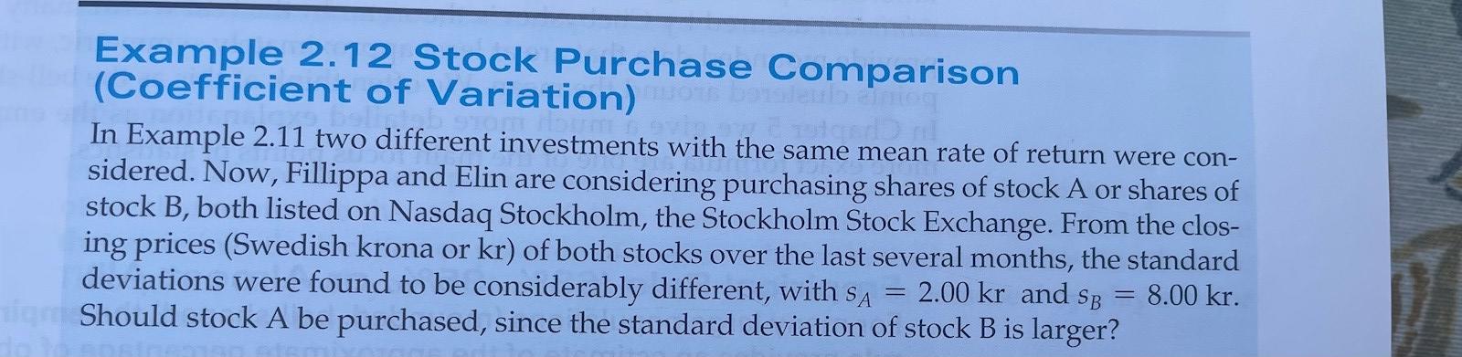 Skulle behöva hjälp att få denna fråga förklarad. Vad blir closing price för stock A och medelvärdet för stock B? Sedan vad Variationskoefficienten (CV) blir?