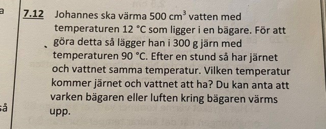 tänker liksom att vattnet kommer bli varmare och järnet kallare, vi vill ha ett positivt värde, men blir fel.