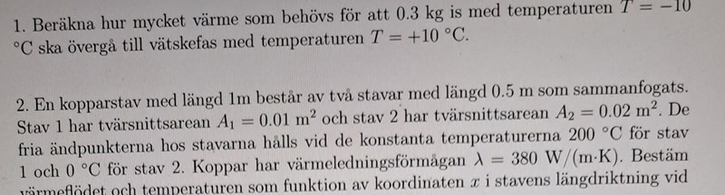 fner skrev:Det krävs energi för att värma isen till från -10 till 0 grader. Sedan krävs det energi för att omvandla från is till flytande vatten. Då är skillnaden i temperatur 0 grader. Till sist krävs det energi för att värma vattnet från 0 till 10 grader. Du kan räkna på ett steg i taget.