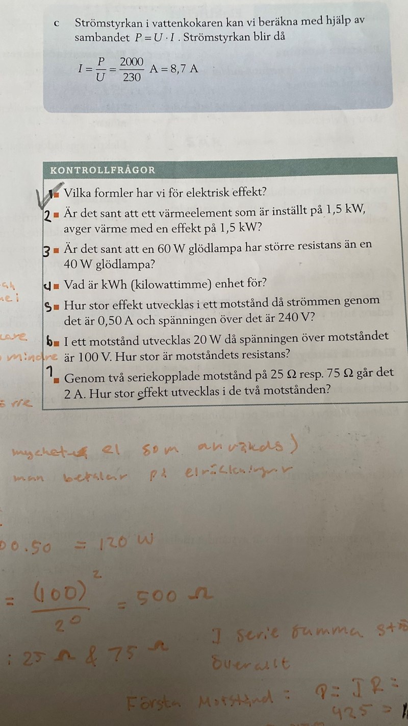 Hej på denna upp på fr 2: jag fattar inte vrf facit säger ja att allt el blir nästan helt värme i rummet