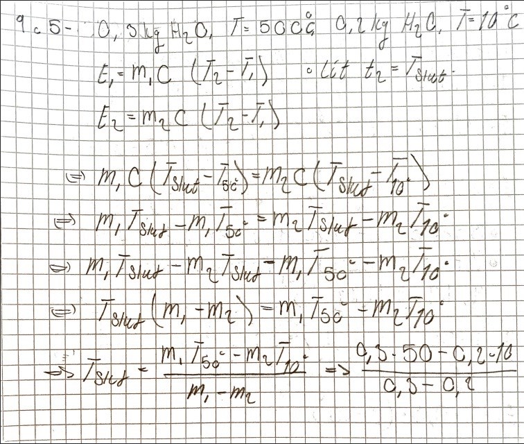 Uppgiften lyder: 300 g vatten av temperaturen 50 grader celcius, blandas med 200 g vatten av temperaturen 10 grader.