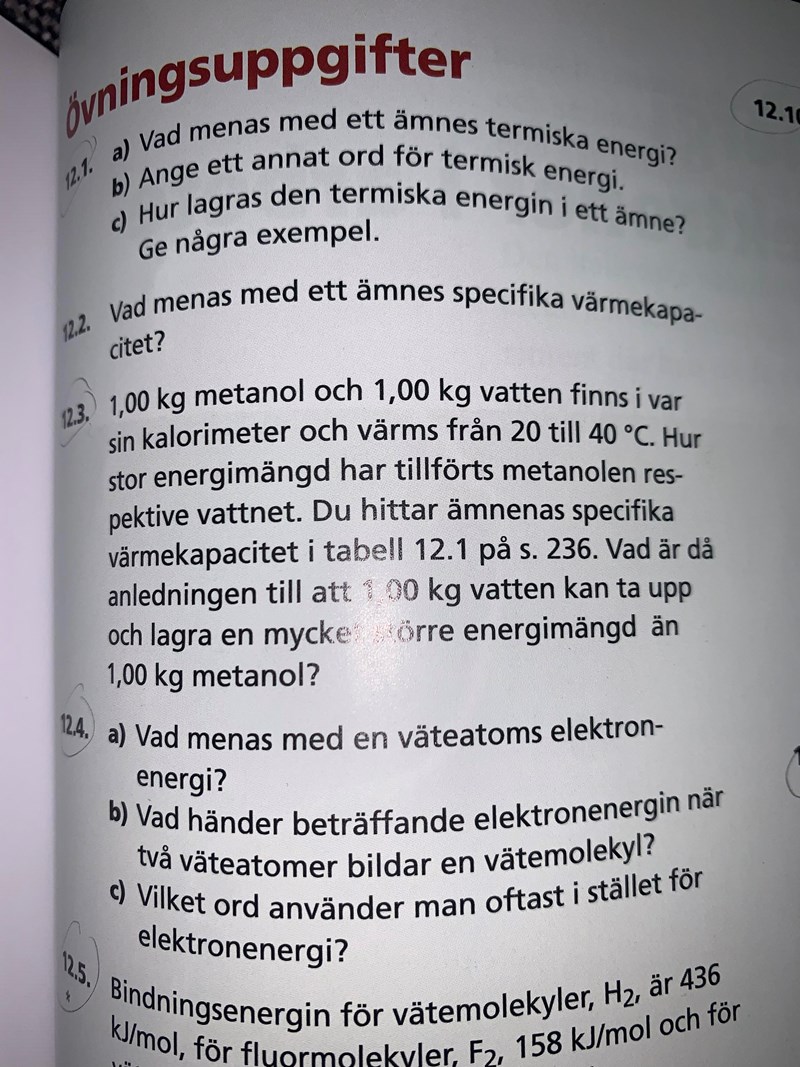 Vilken enhet har du på den specifika värmekapaciteten för ämnena?