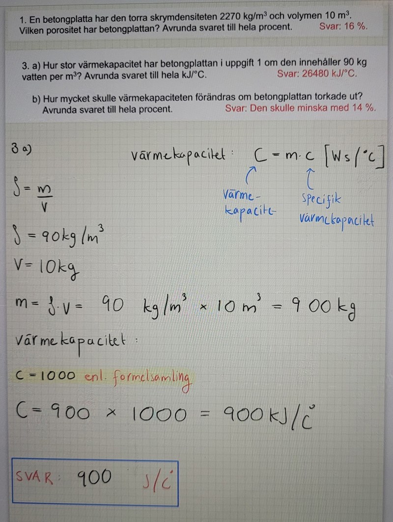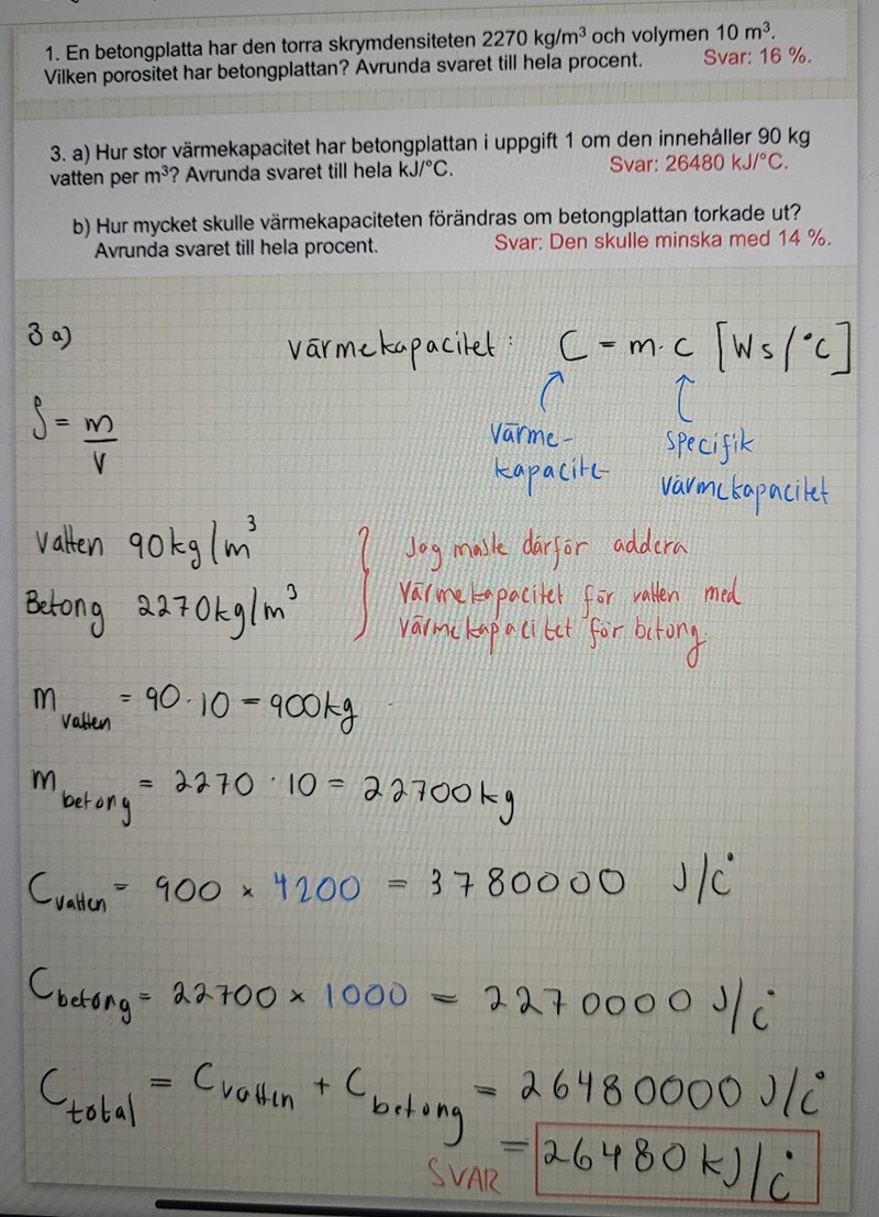 Och du har 22700 kg betong och 900 kg vatten och du måste summera värmekapaciteterna.