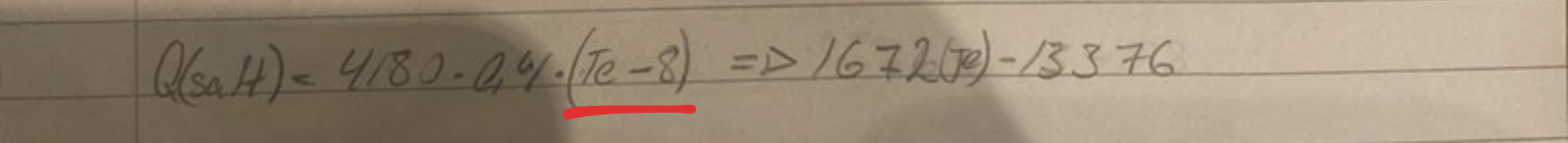 ΔQ(saft)=Q(saft)efter - Q(saft)före = 4180*0,4*Te - 4810*0,4*8 = 4180*0,4(Te-8) J