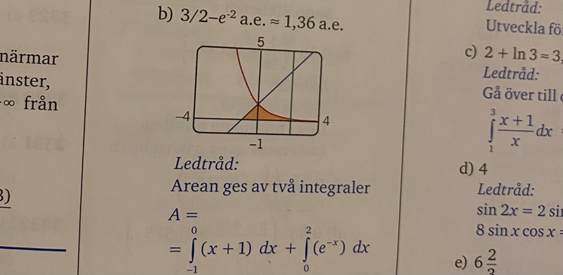 Jo men det stämmer ju! Jag såg inte att den röda kurvan inte går ner till x-axeln utan tittade på det tårtbitsformade området strax ovanför istället.