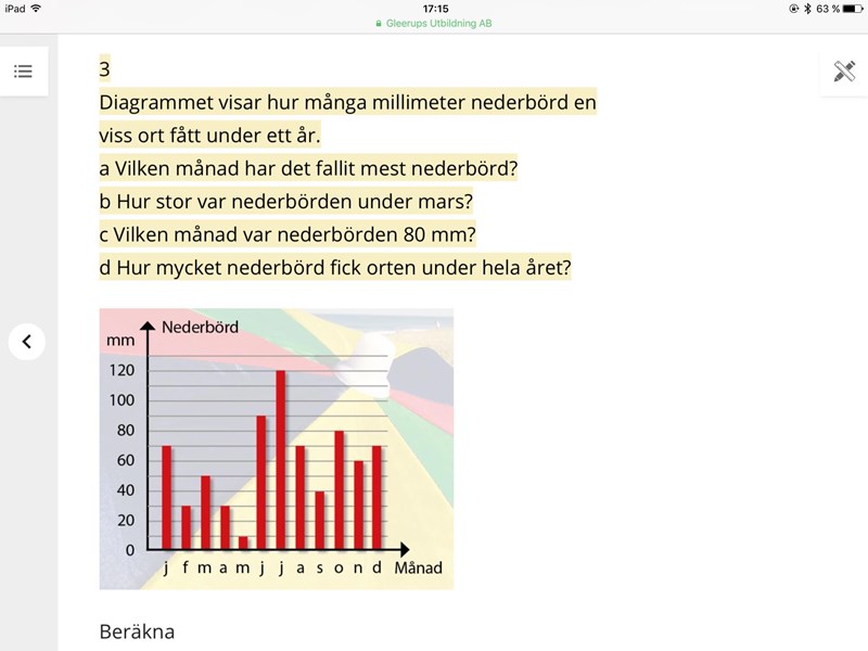 jag har tänkt att jag ska addera nederbörden under alla 12 månader och jag fick det till 680 mm, men facit säger 720 mm