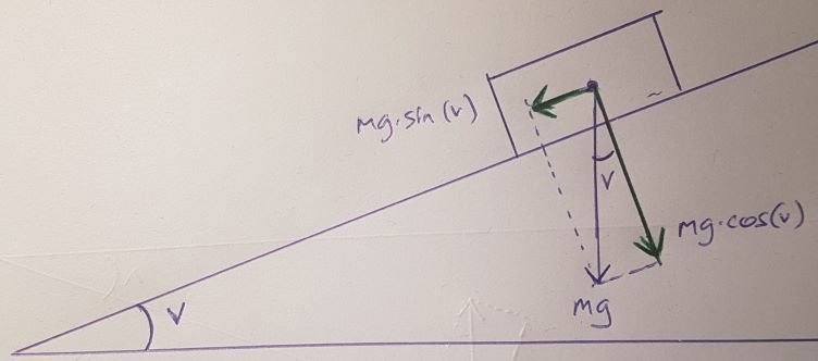 Förstår du varför tyngdkraften kan komposantuppdelas på just det sättet jag visade i den här bilden?