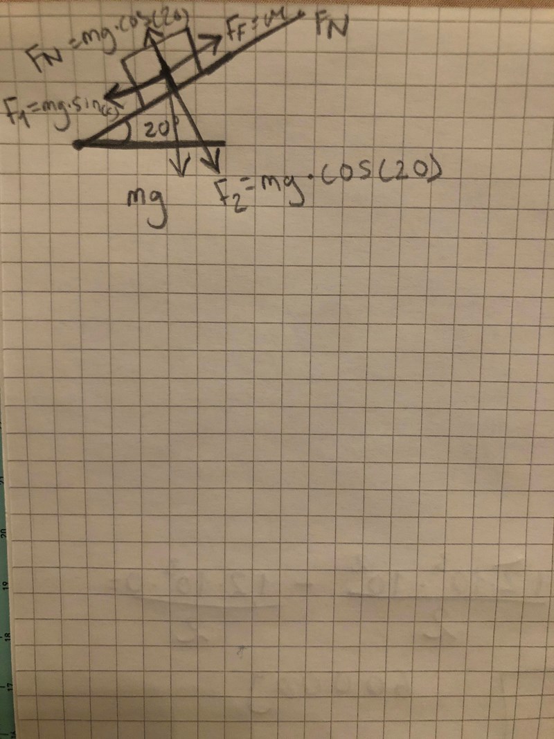 Men i din bild har du endast ritat ut kraften mg*sin(a). Vart är friktionskraften? Och varför är kraften mg*sin(a) ”nedåt lutad”